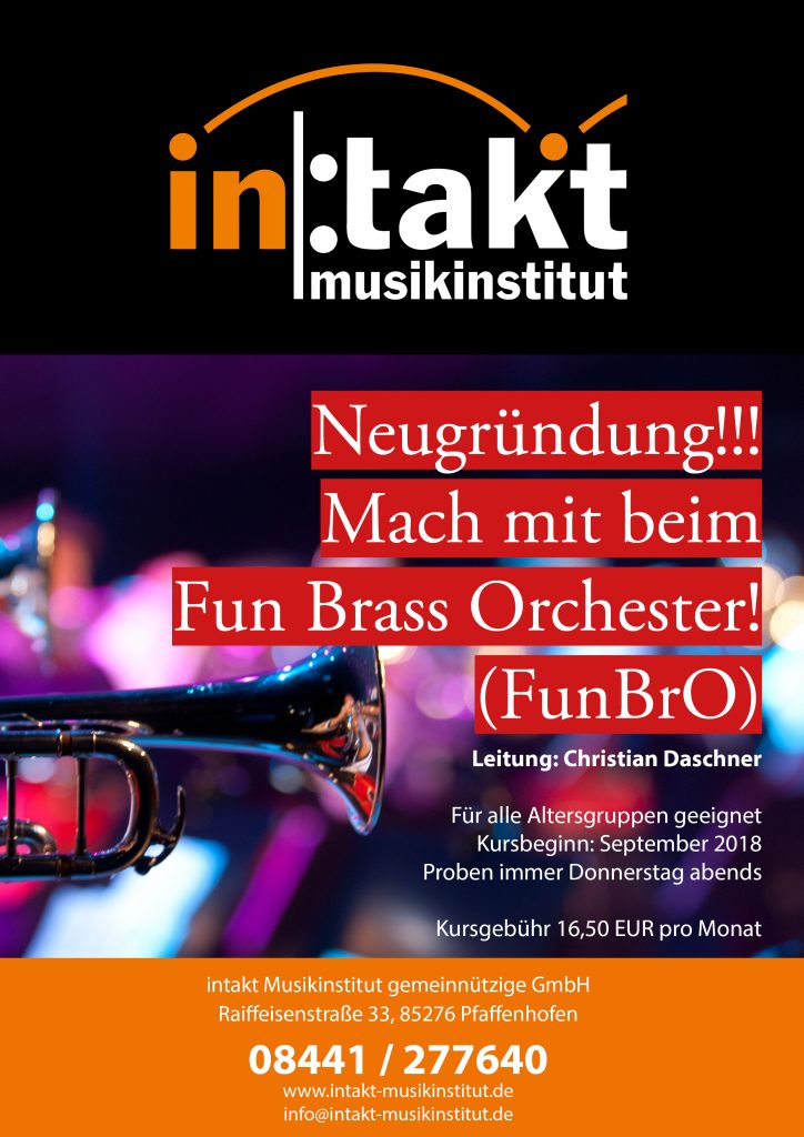 Ja, es ist soweit: Endlich haben wir einen Termin und einen Plan! Die Proben für das Fun Brass Orchester FunBrO werden immer Donnerstags um 19.00h stattfinden. Los gehts am Donnerstag den 20. September um 19.00h mit einer Kennenlern-Probe. Hier können alle Interessenten einfach vorbeikommen und sich das mal ansehen. Wichtig: Instrument und eigenen Notenständer mitbringen! […]